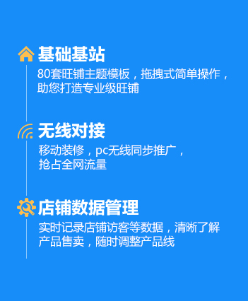 | 旺鋪類型 | 入門版 | 旺鋪 | 包含80套主題風(fēng)格,50個(gè)自定義版塊,擁有5G存儲(chǔ)、10秒就 能建成自己的企業(yè)網(wǎng)站。 | |