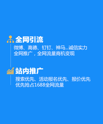 | 新浪微博 | × | √ | 支持企業(yè)誠標(biāo)、認(rèn)證、信用外顯,還能支持用戶一鍵開通微博 企業(yè)官微、一鍵同步1688社區(qū)原創(chuàng)帖至微博端、支持用戶一鍵 同步商品信息至微博端,為店鋪引流提升交易; | |