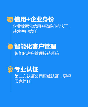 | 第三方專業(yè)認(rèn)證 | × | √ | 第三方認(rèn)證公司專業(yè)認(rèn)證企業(yè)真實(shí)性、合法性,降低交易選擇 成本; | |